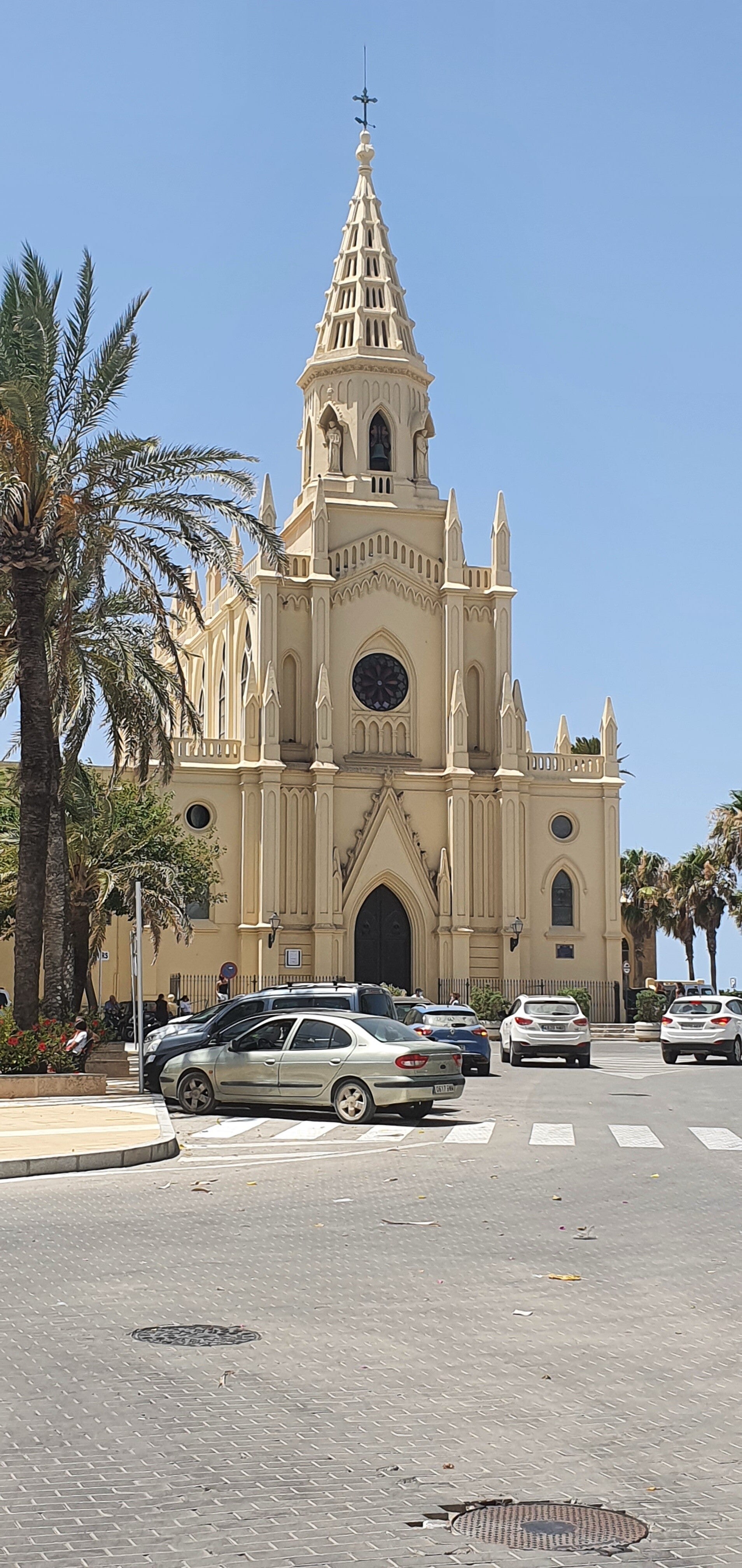 El pueblo tiene un paseo que invita a relajarse, con vista a su faro por la derecha, y a la iglesia de la Virgen de Regla.