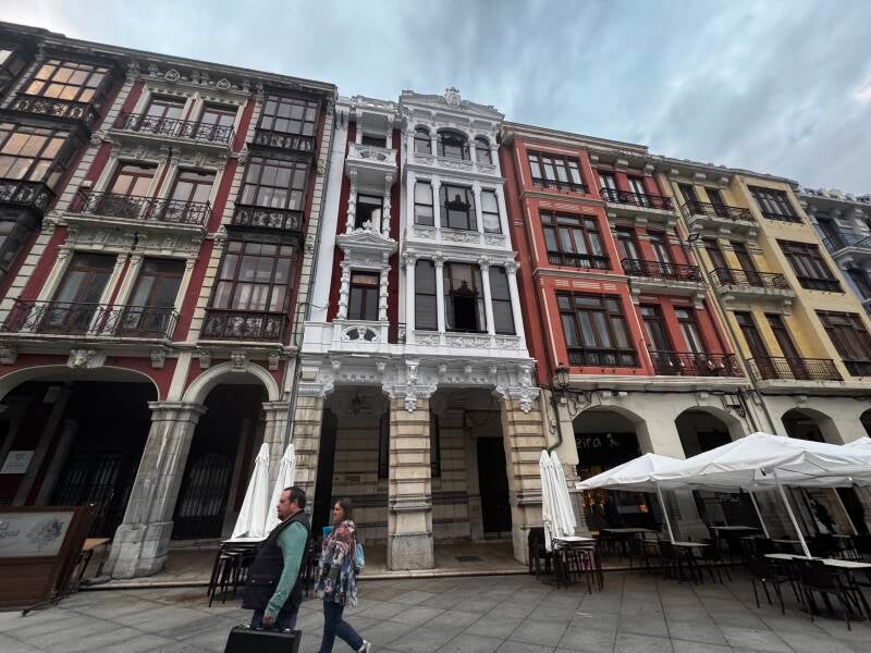 La Calle Galiana nos encantó desde el primer momento. Sus largos soportales empedrados, con esas piedras irregulares que cuentan siglos de historia. A un lado, fachadas llenas de color; al otro, la vida cotidiana de Avilés avanzando con calma.