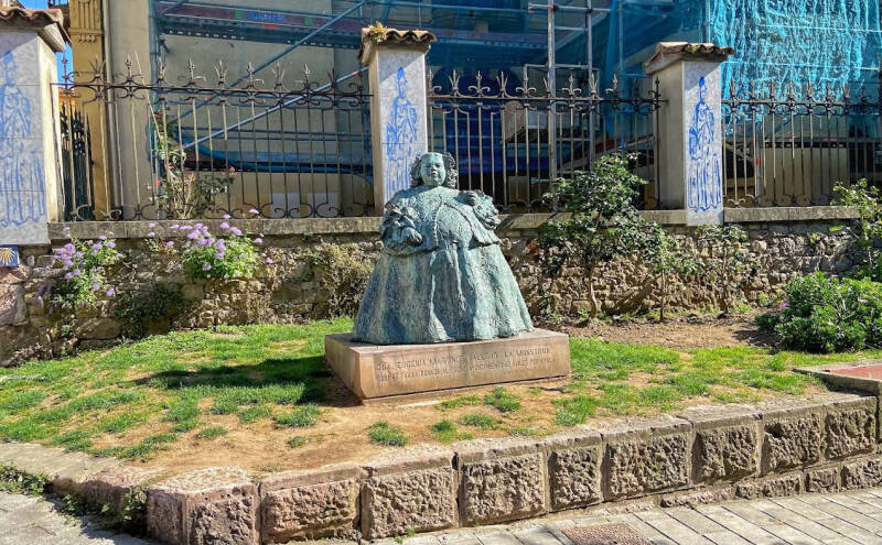 Encontramos La Monstrua en pleno casco histórico y, nada más verla, entendimos por qué es una de las figuras más llamativas de Avilés. La escultura representa a María García, una mujer del siglo XVII conocida por su estatura y complexión extraordinarias en una época en la que cualquier diferencia física llamaba poderosamente la atención. Su historia se transmitió durante generaciones hasta convertirse casi en una leyenda local.