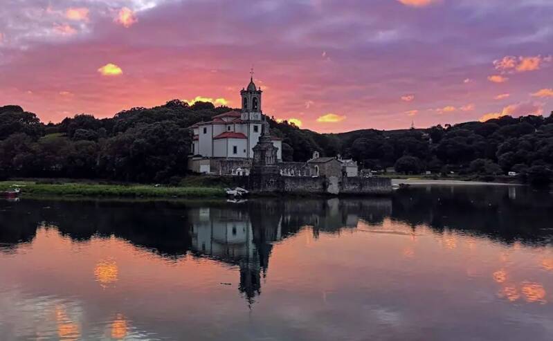 Cuando la marea sube, el reflejo de la capilla y las cruces del cementerio en el agua crea una imagen que deja sin palabras. Es uno de esos lugares donde el tiempo parece detenerse.