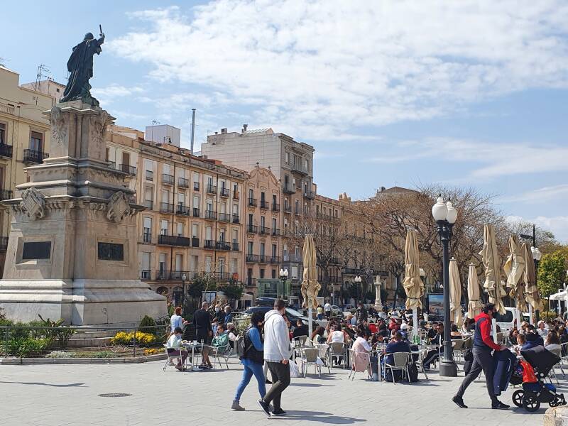 Está rodeada de edificios históricos, como el Ayuntamiento de Tarragona (siglo XVIII) y construcciones con balcones modernistas.Suele ser escenario de eventos culturales, conciertos y mercados temporales.