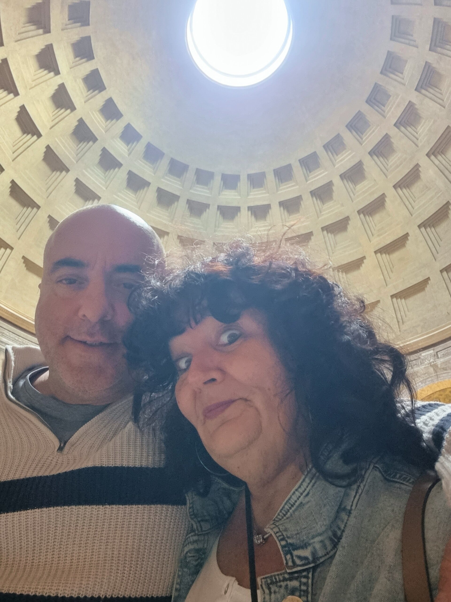 Después de pasear por plazas y templos, llegamos al Panteón, uno de esos lugares que nos dejaron completamente asombrados. Su fachada clásica con columnas corintias nos daba la bienvenida, pero fue al entrar cuando realmente sentimos la magnitud de la Roma antigua: un espacio tan armonioso y perfecto que casi parecía desafiar el paso del tiempo.