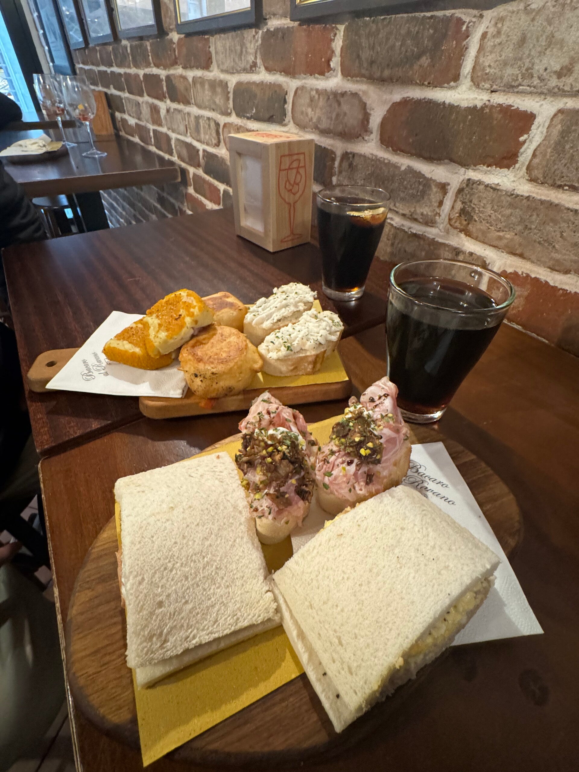 Los CICHETTIS, también podrían ser un buen picoteo. Nosotros los probamos el último día, cuando fuimos al mercado. Allí hay muchos bares que se dedican a estos pinchos, que te aseguro no probar probar solo uno.